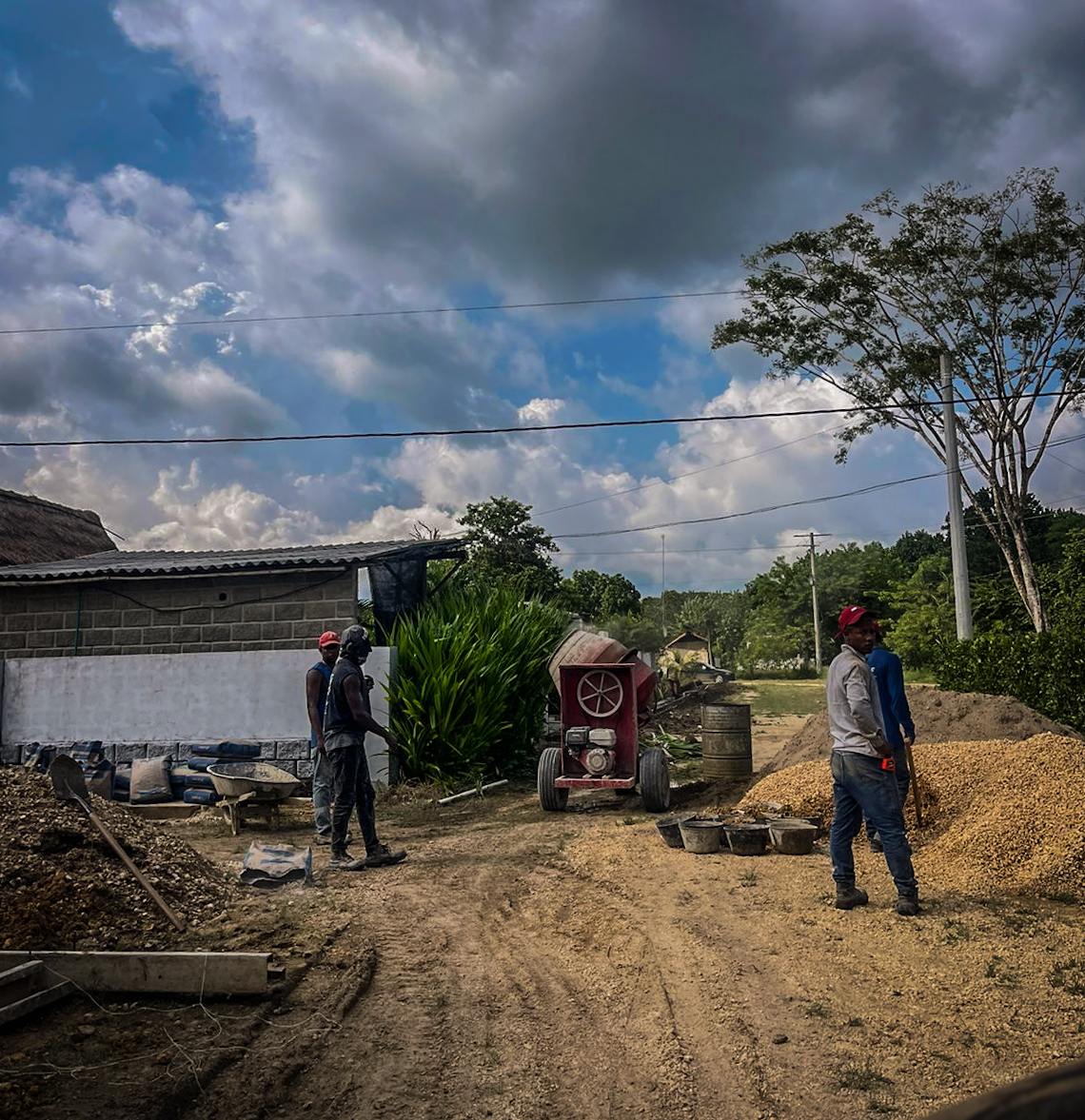 Durante el último período, se completaron 540 metros lineales de construcción de bordillos y andenes en las manzanas D, G y H. Estas obras mejoran significativamente la infraestructura y funcionalidad de estas áreas del proyecto. A lo largo de los días se continuaron las actividades de construcción de bordillos y andenes, utilizando maquinaria como buggy, trompo, picos y palas. También se recibieron materiales como cemento y varillas para avanzar con las obras.