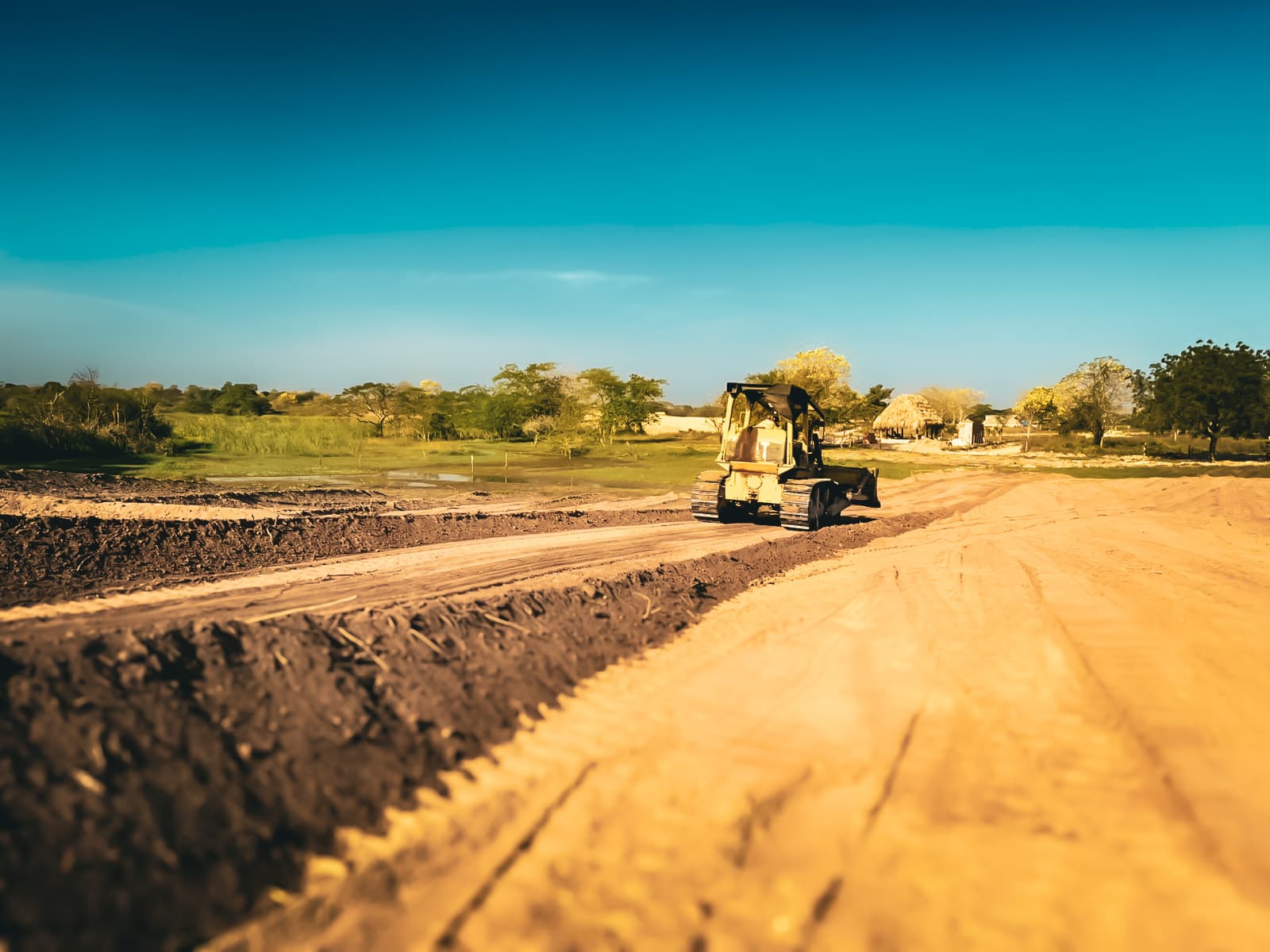 Uso de maquinaria especializada (bulldozers D5C, D6D y D6) para garantizar avances a pesar de las condiciones climáticas.
